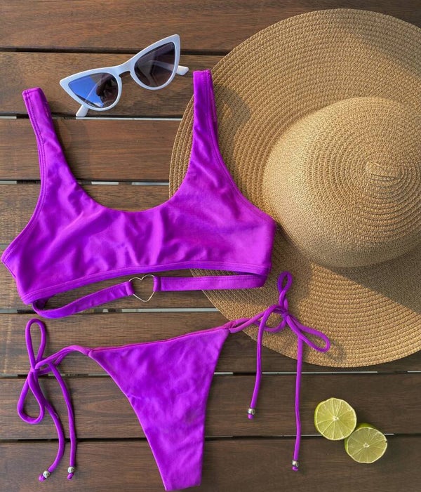 Biquini Cancun - Top com metal de coração e calcinha fio dental de arramar
