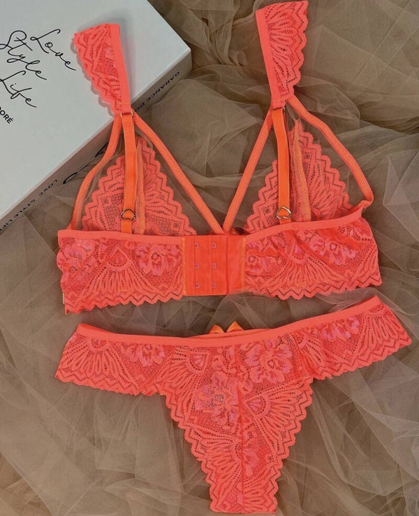 Sem bojo, sem aro, de tule. Colchete triplo.